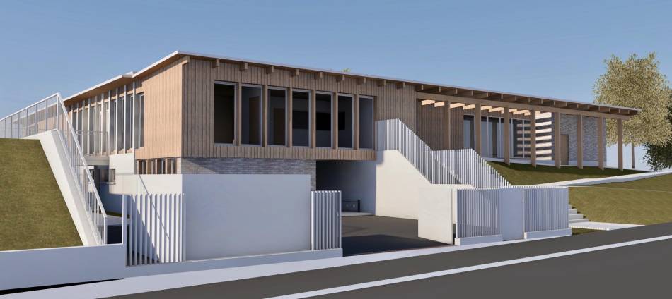 Le nouvel accès piéton à l’établissement constitue un point fort du projet, il marque son articulation avec les espaces publics et renforce sa lisibilité et son identité avec et à partir de l’architecture existante. Les aménagements d’espaces extérieurs multifonctionnels appuient également la qualité d’usage du projet : des nouveaux espaces plantés sont à la fois supports de parcours ludiques pour les enfants et bassins d’infiltration des eaux pluviales, participent au maintien de la biodiversité et à la préservation du patrimoine général.