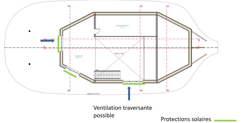 - Murs extérieurs : Isolation paille (38cm) – R=7,56 m².K/W